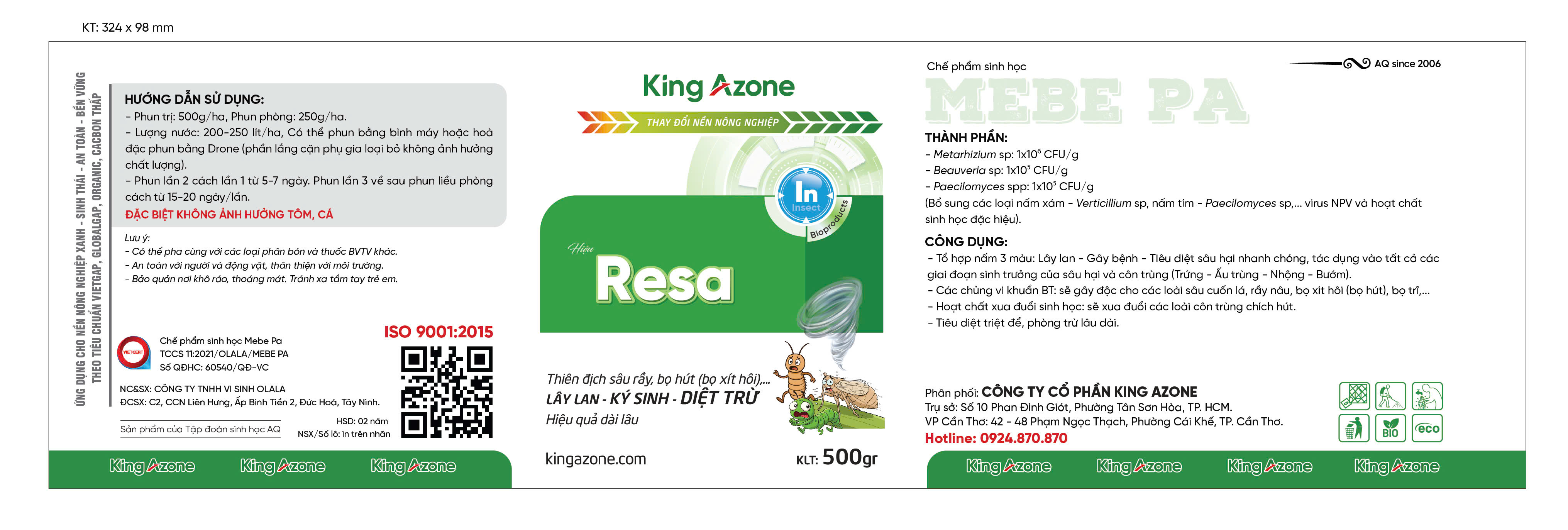 Resa chứa các chế phẩm sinh học giúp bảo vệ cây trồng trước sâu bệnh và côn trùng hại một cách an toàn và bền vững, gồm: